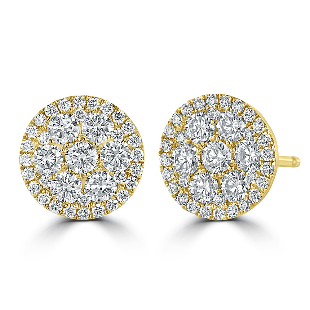 Indulge in the exquisite design of our 18ct yellow gold stud earrings, which feature a luxurious array of diamonds set in a stunning multi-halo arrangement. At the centre of each earring, a round brilliant cut diamond is prominently displayed, surrounded by a halo of six meticulously placed diamonds and an additional six smaller diamonds to fill the gaps. A final outer halo of round brilliant cut diamonds adds an extra layer of dazzling brilliance, bringing the total diamond weight to an impressive 0.87 carats. Crafted from rich 18ct yellow gold, these earrings enhance the fiery sparkle of the diamonds and offer a warm, opulent hue that complements any skin tone. Perfect for special occasions or adding a glamorous touch to everyday wear, these diamond halo stud earrings are a timeless addition to any jewellery collection, promising to captivate and charm with their intricate design and radiant glow.