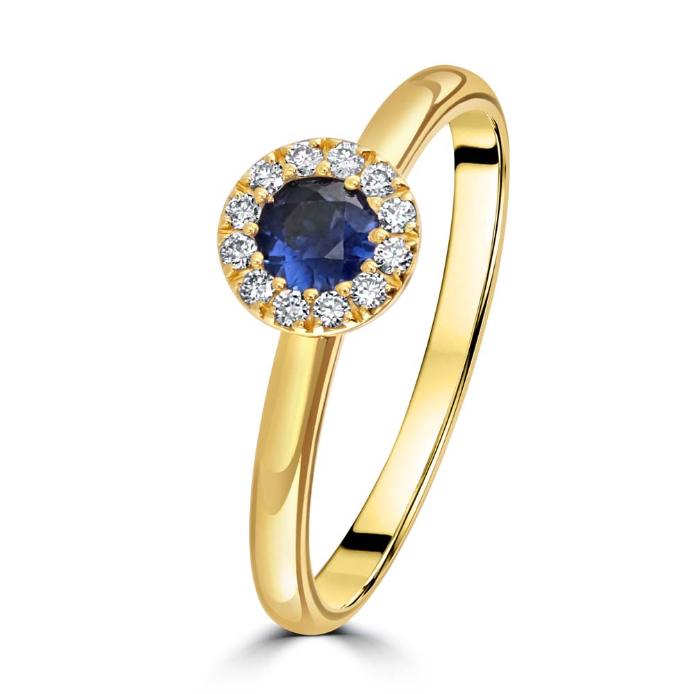 18ct Yellow Gold Sapphire and Diamond Halo Ring