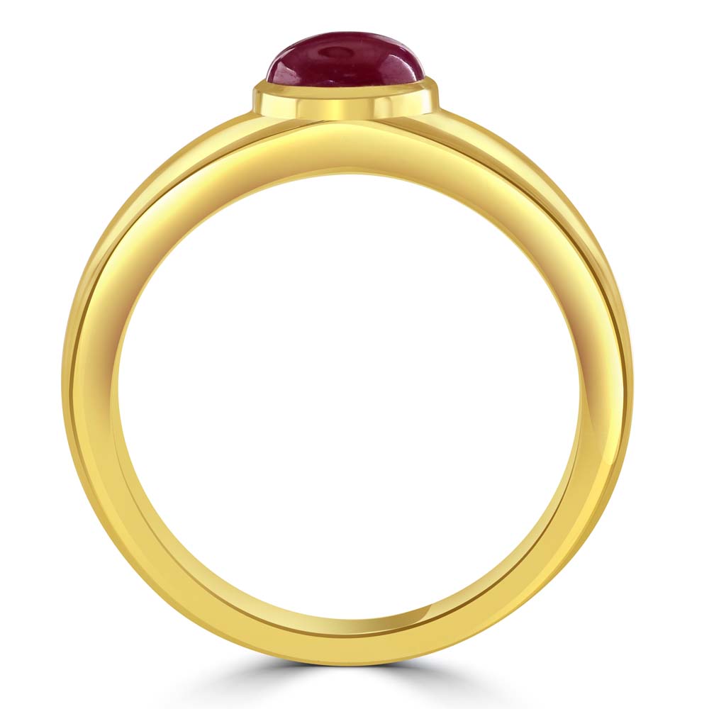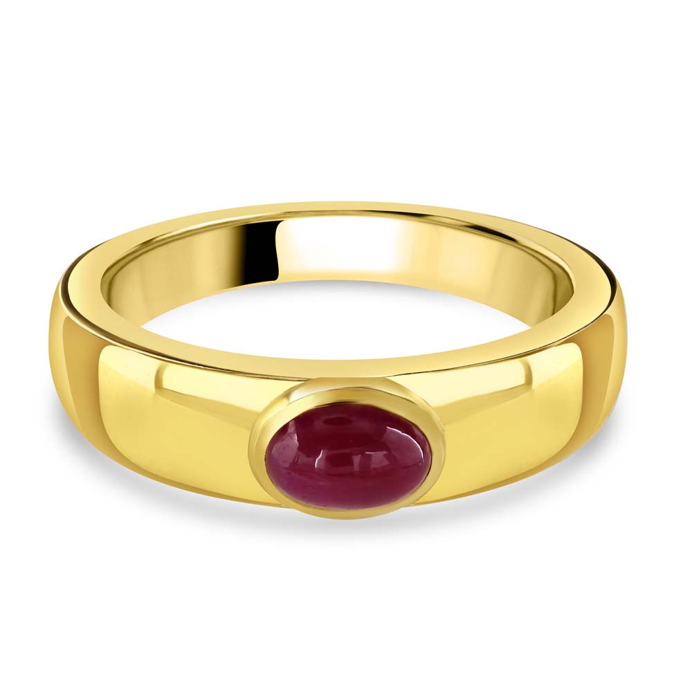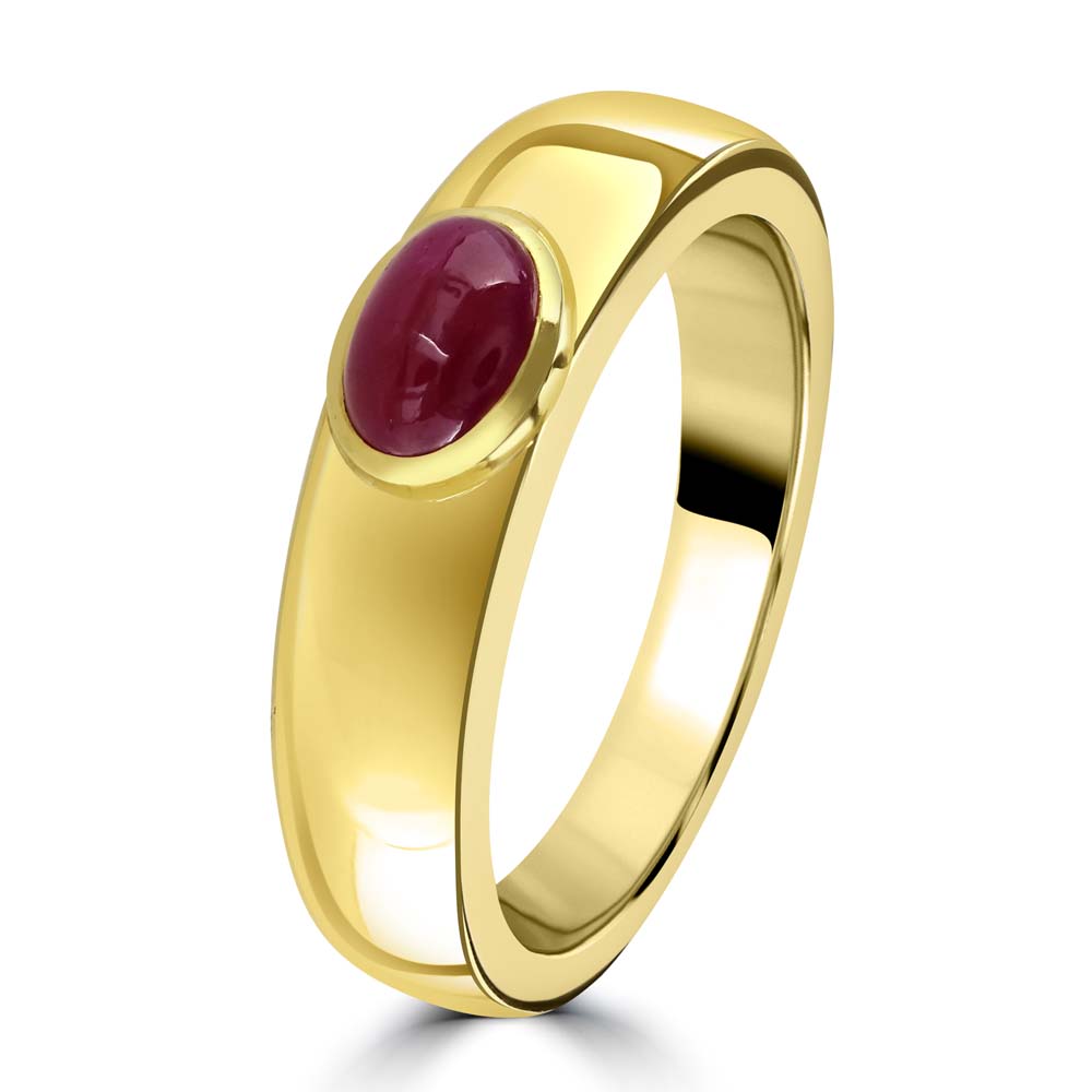Discover the timeless elegance of our 18ct yellow gold solitaire ring, meticulously designed to feature a stunning single cabochon cut oval ruby. The ruby, weighing 0.73 carats, is expertly rubover set, showcasing its rich, vibrant colour and smooth, polished surface. This elegant setting highlights the gemstone’s natural beauty, creating a piece that radiates sophistication and charm. Perfect for celebrating special occasions or adding a touch of luxury to your jewellery collection, this 18ct yellow gold solitaire ring combines classic design with exceptional craftsmanship. The warm yellow gold band beautifully complements the deep red ruby, creating a piece that symbolizes enduring love and elegance. The cabochon cut of the ruby adds a unique and contemporary twist to the traditional solitaire design, making this ring a standout piece. Whether worn alone or paired with other fine jewellery, this ring is versatile enough for both everyday wear and special occasions, making it a cherished addition to any collection.