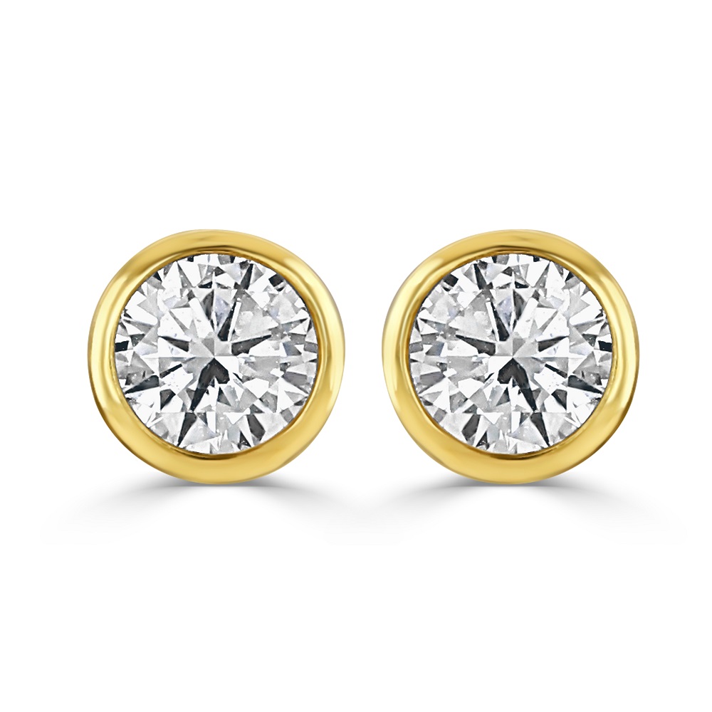 Crafted with precision, the rubover setting not only secures the diamond but also complements its radiant glow, creating a sleek and polished look that enhances the overall allure of the earrings. The yellow gold provides a classic and versatile backdrop that highlights the diamonds' clarity and enhances their visual impact.