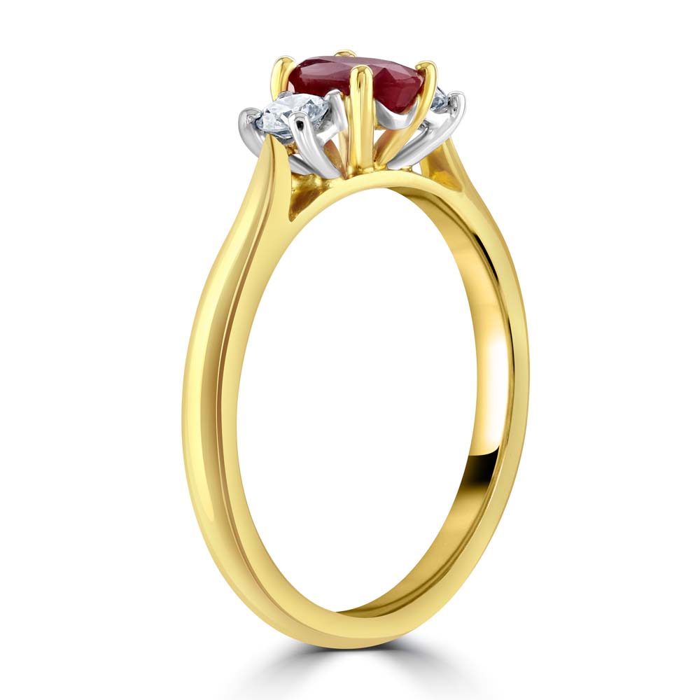 18ct White and Yellow Gold Ruby and Diamond Trilogy Engagement Ring