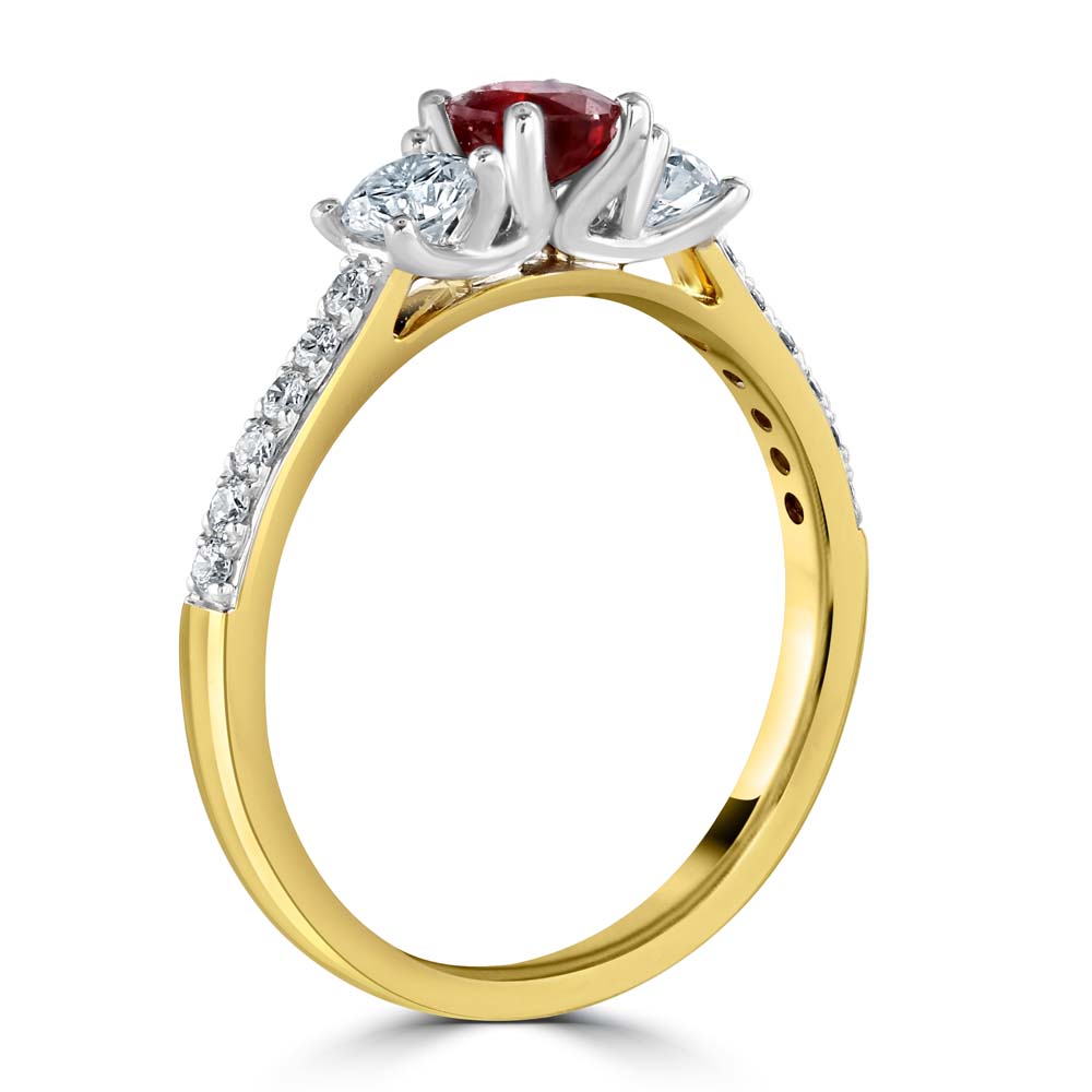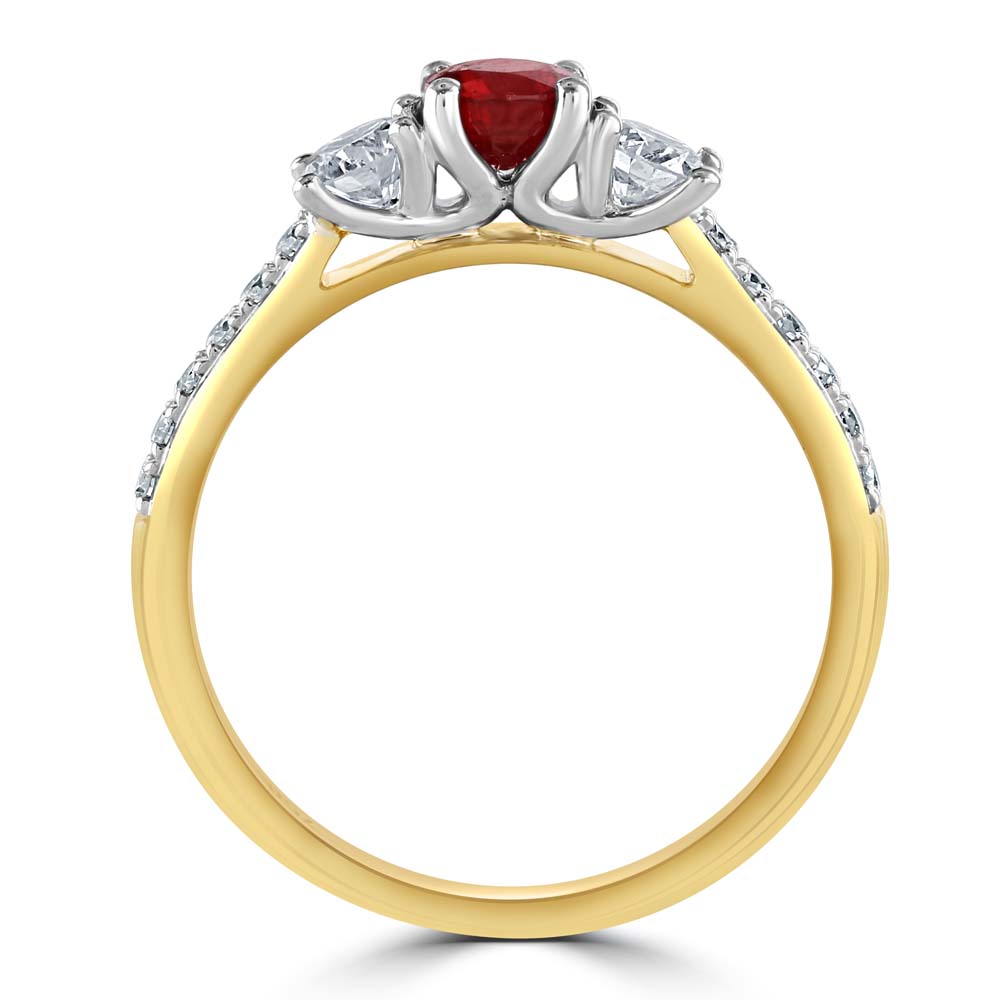 18ct Yellow and White Gold Ruby and Diamond Trilogy Engagement Ring