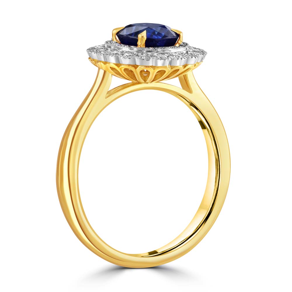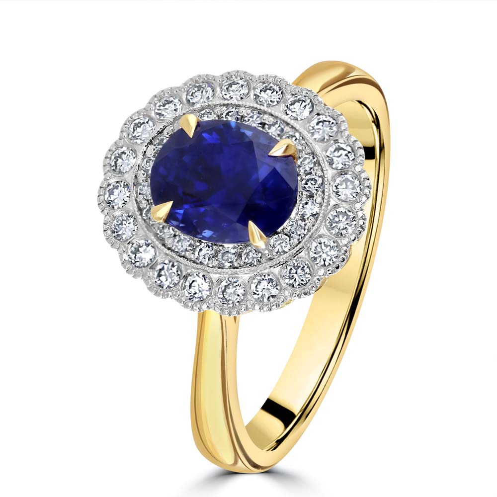 18ct Yellow and White Gold Sapphire and Diamond Halo Ring