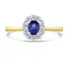 18ct Yellow and White Gold Sapphire and Diamond Halo Ring