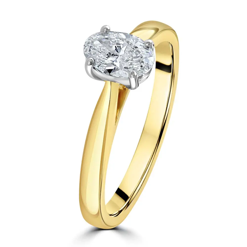 Celebrate a love as rare and radiant as this exquisite 18ct yellow and white gold solitaire ring, featuring a single oval-cut diamond — a symbol of individuality and elegance. Its graceful, elongated shape creates a timeless silhouette that flatters the hand while radiating brilliance and fire. The diamond is held in a graceful four-claw setting, allowing light to dance through every facet and illuminate its natural sparkle. Soft curves and harmonious proportions evoke a sense of grace, while the diamond’s pure brilliance captures the light. The union of yellow and white gold mirrors the harmony of two souls—distinct yet inseparable, creating a design that is both classic and contemporary.