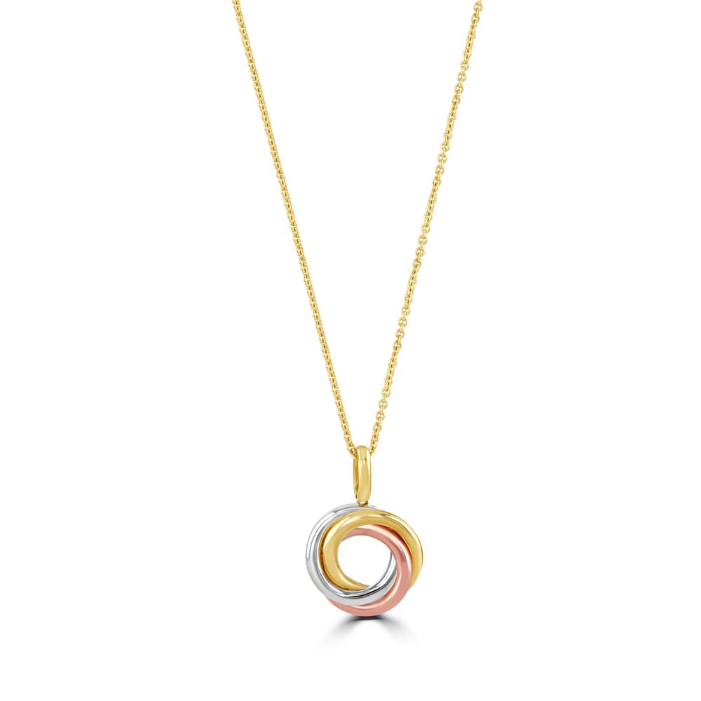 Discover the allure of our exquisite trilogy Circle pendant, crafted from a harmonious blend of 18ct yellow, white, and rose gold. This elegant pendant showcases three interconnected circles, each representing a distinct gold tone, symbolizing unity and eternal style. The pendant gracefully suspends from an 18-inch yellow gold trace chain, which can be adjusted to 16 inches for a customizable fit. Perfectly balanced in design and colour, this pendant is an embodiment of sophistication and modern elegance. Its adjustable chain ensures it can be worn at varying lengths to suit different necklines, making it a versatile addition to any jewellery collection. Ideal for those who appreciate the beauty of mixed metals and contemporary designs, this necklace is perfect for daily wear or special occasions. Add a touch of luxury and timeless appeal to your wardrobe with this stunning 18ct gold pendant, a piece that truly celebrates the fusion of classic and contemporary craftsmanship.