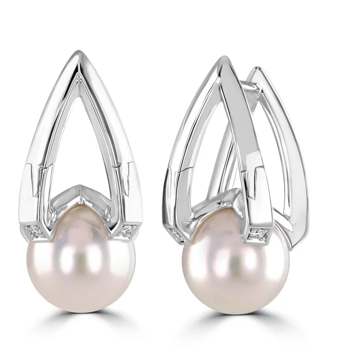 18ct White Gold Akoya Pearl and Diamond M Collection Earrings