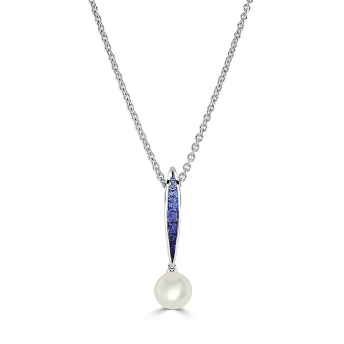18ct White Gold Akoya Cultured Pearl and Sapphire Ocean Pendant