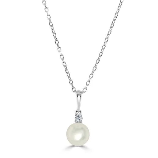 18ct White Gold Akoya Cultured Pearl and Diamond Pendant