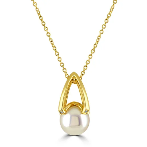 18ct Yellow Gold Akoya Cultured Pearl and Diamond M Collection Pendant