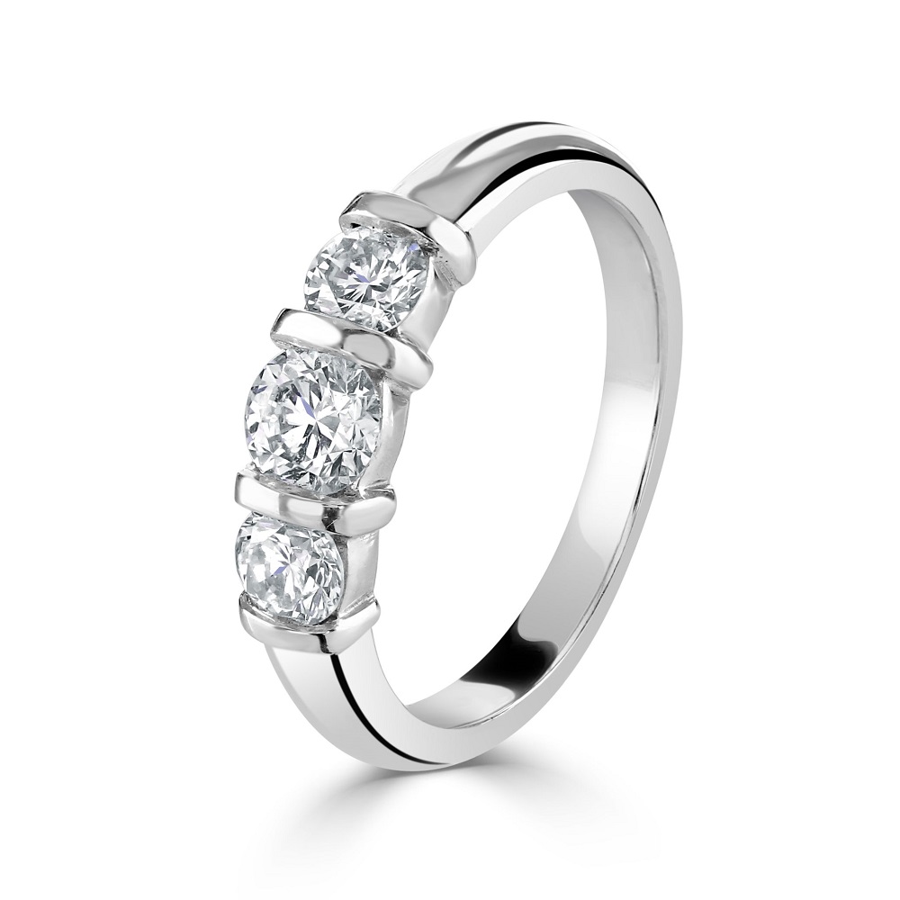 Introducing our elegant Platinum three diamond bar set ring, a stunning piece that combines classic sophistication with modern design. This exquisite ring showcases three round brilliant cut diamonds, meticulously bar-set to highlight their individual brilliance and collective sparkle, with a total diamond weight of 0.78 carats. Crafted from premium platinum, this ring features a sleek and durable setting that enhances the natural beauty of the diamonds, making it an ideal choice for those seeking a blend of contemporary style and timeless elegance. Perfect for engagements, anniversaries, or as a luxurious gift, this diamond ring is designed to be a timeless addition to any fine jewellery collection.