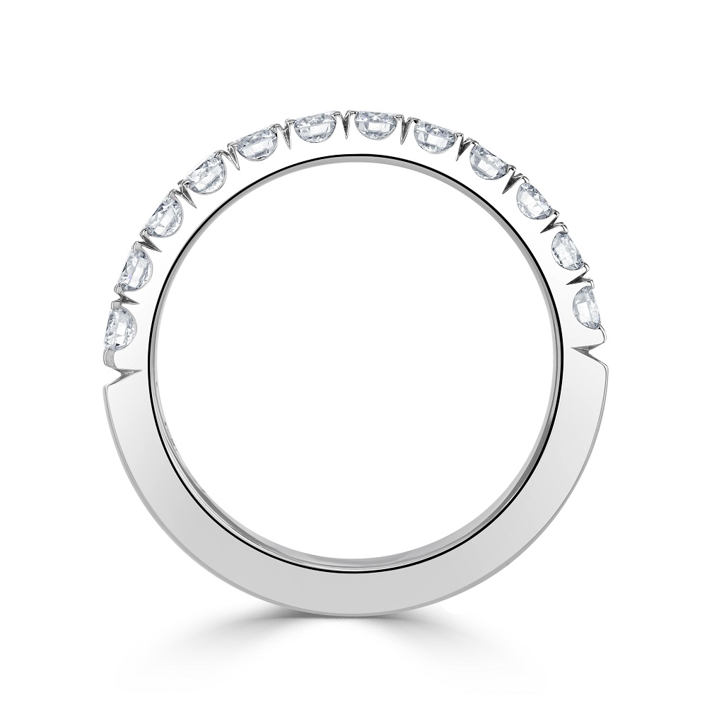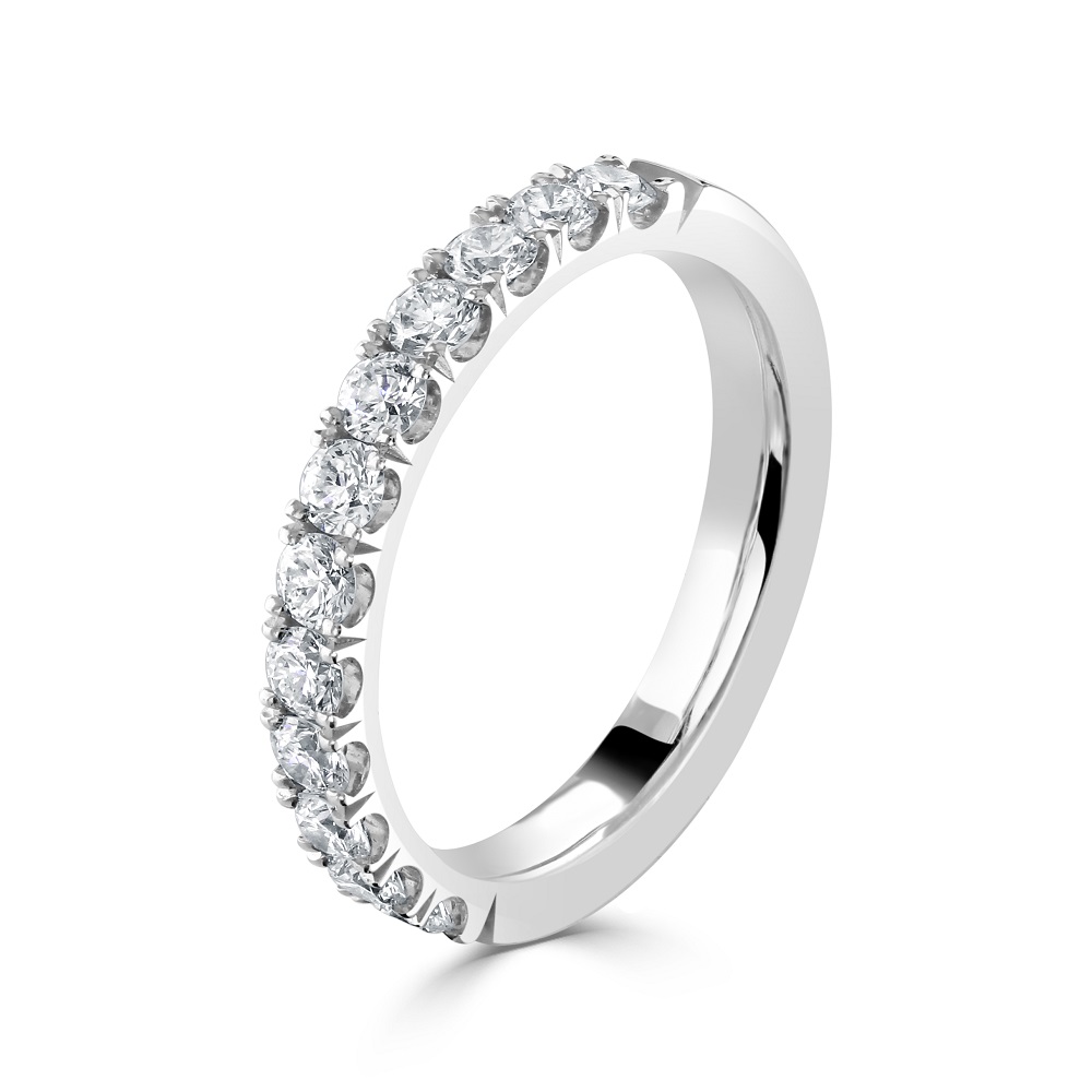 Embrace the timeless elegance of our platinum half eternity ring, exquisitely crafted to symbolize enduring love. This luxurious ring features twelve round brilliant cut diamonds, collectively weighing 0.72 carats, each meticulously set in a four-claw setting for maximum security and brilliance. The platinum band, known for its durability and sleek appearance, enhances the natural sparkle of the diamonds, creating a continuous ribbon of light. Ideal for anniversaries, wedding bands, or as a sophisticated addition to any jewellery collection, this half eternity ring blends classic design with contemporary appeal, ensuring it remains a beloved piece for years to come.