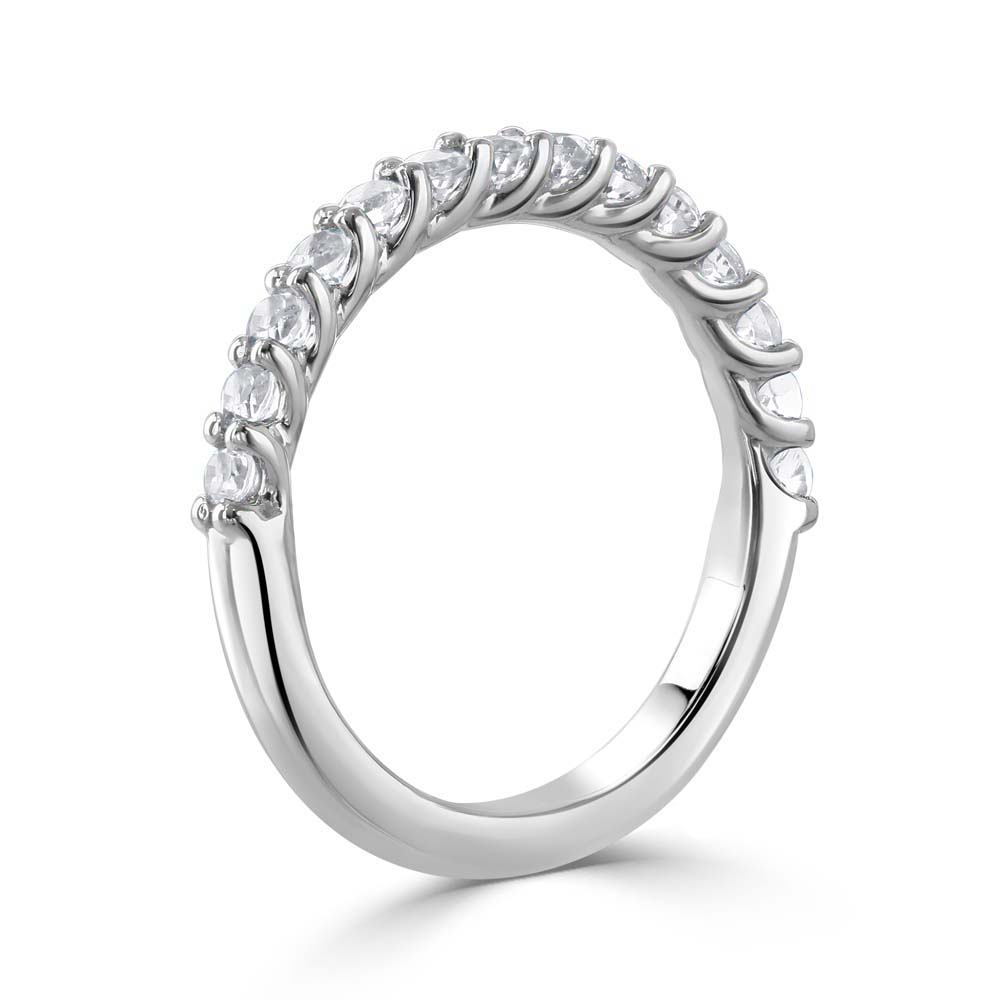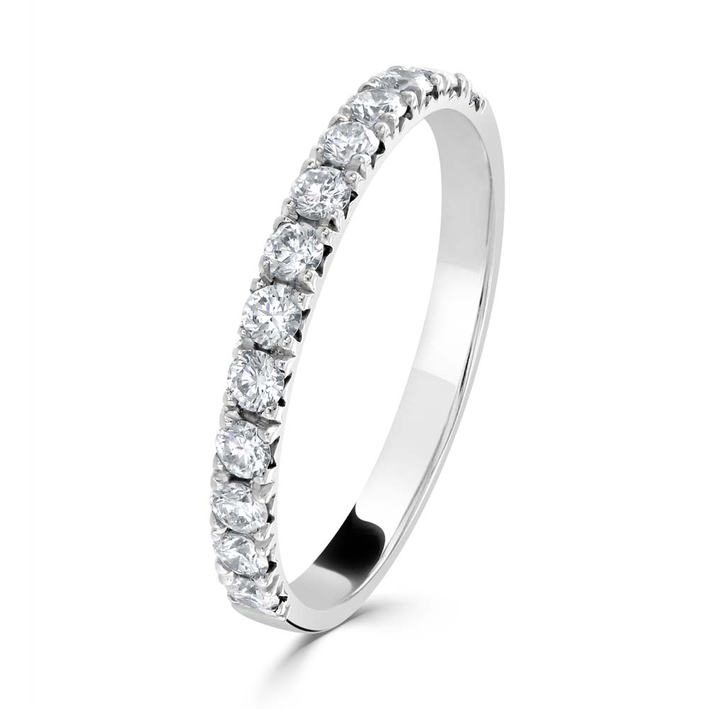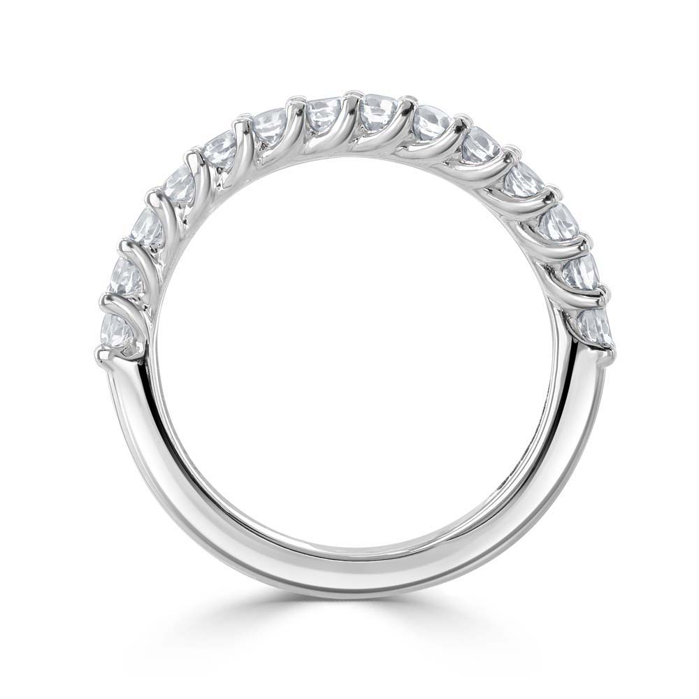Discover the timeless allure of our platinum half eternity ring, a luxurious addition to any fine jewellery collection. This elegant ring features 13 round brilliant cut diamonds, each meticulously claw-set to create a seamless band of radiant sparkle. Totalling 0.48 carats, these diamonds are chosen for their exceptional clarity and brilliance, perfectly complementing the sleek and durable platinum setting. The platinum's natural lustre enhances the diamonds' sparkle, offering a sophisticated look that's suitable for both everyday elegance and special occasions. Ideal for an anniversary gift, wedding band, or a meaningful token of affection, this half eternity ring embodies enduring love and timeless style.