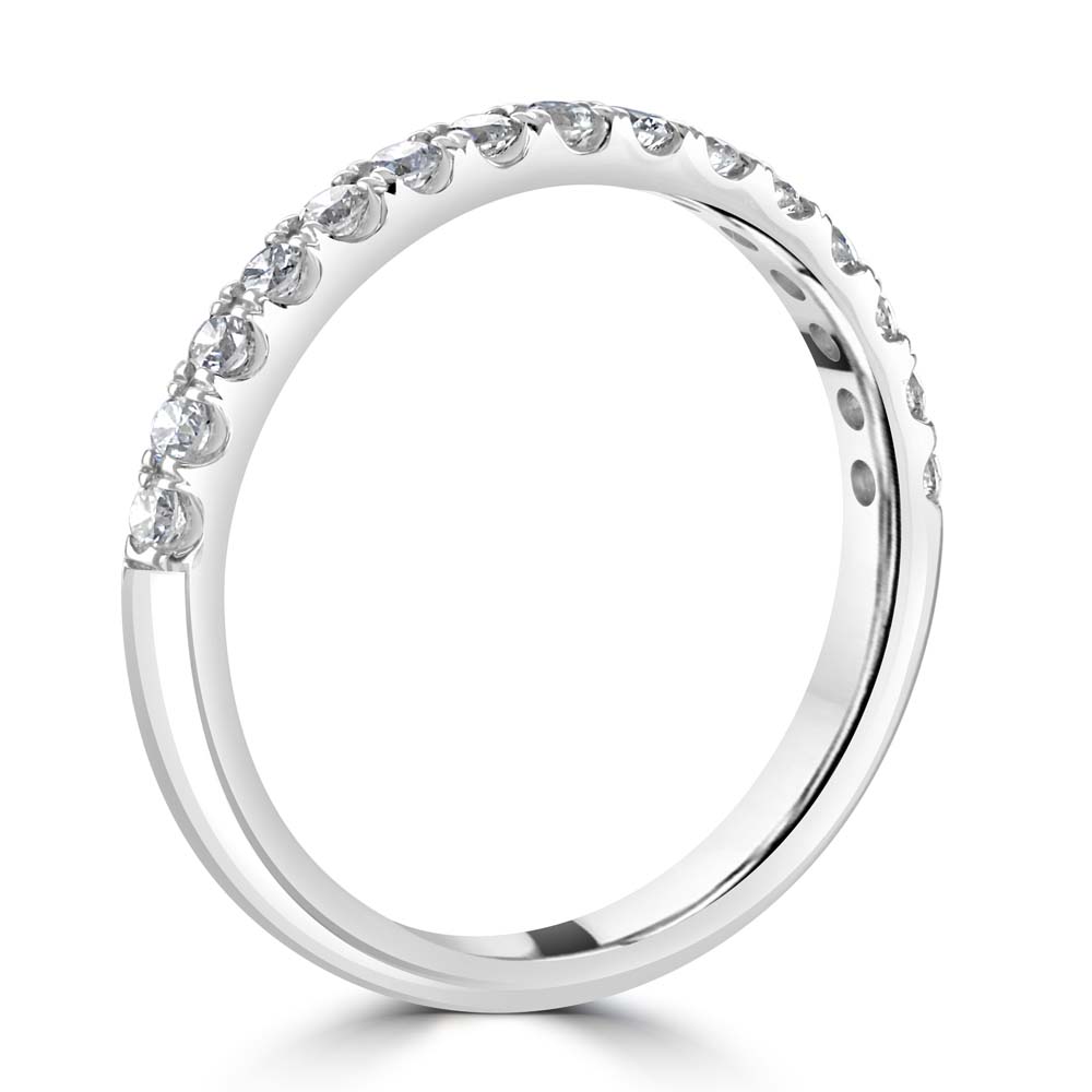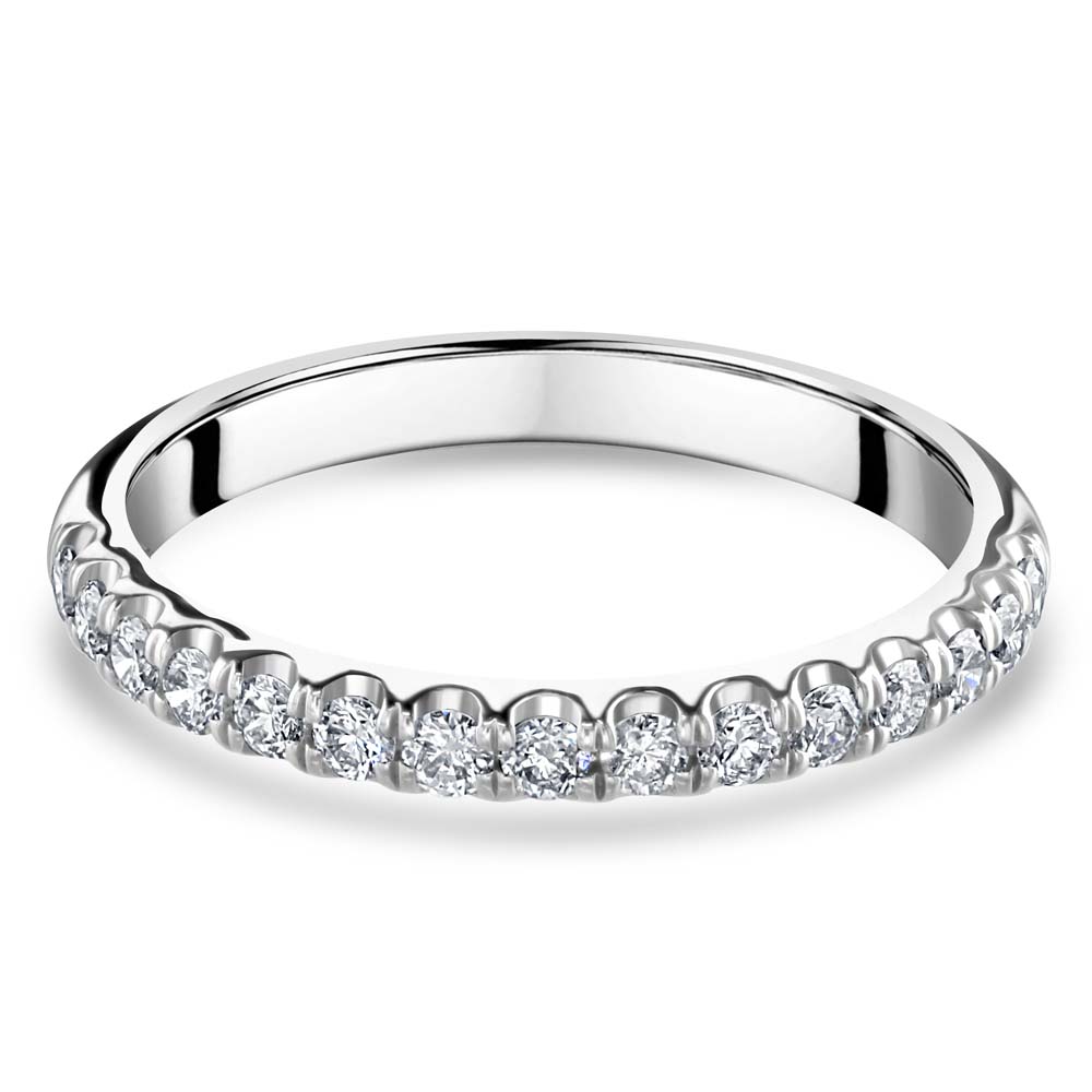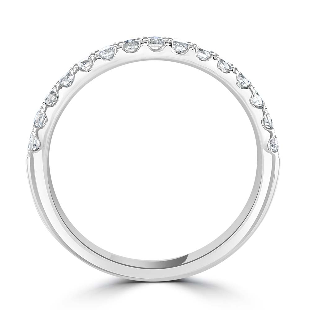 Discover the timeless elegance of our platinum half eternity ring, featuring 15 stunning round brilliant cut diamonds set in a sophisticated split four-claw setting. This exquisite ring is designed on a softened court band, ensuring both comfort and style. With a total diamond weight of 0.33 carats, each diamond is carefully selected and meticulously set to maximize brilliance and sparkle. The split four-claw setting provides a secure and elegant framework, allowing each diamond to shine brilliantly while maintaining a refined and luxurious appearance. Crafted from premium platinum, this half eternity ring combines lasting durability with unparalleled beauty. The softened court band offers a comfortable fit, making it perfect for daily wear or special occasions. Whether celebrating an anniversary, milestone, or simply adding a touch of sophistication to your jewellery collection, this platinum half eternity ring is a true symbol of enduring love and refined elegance.