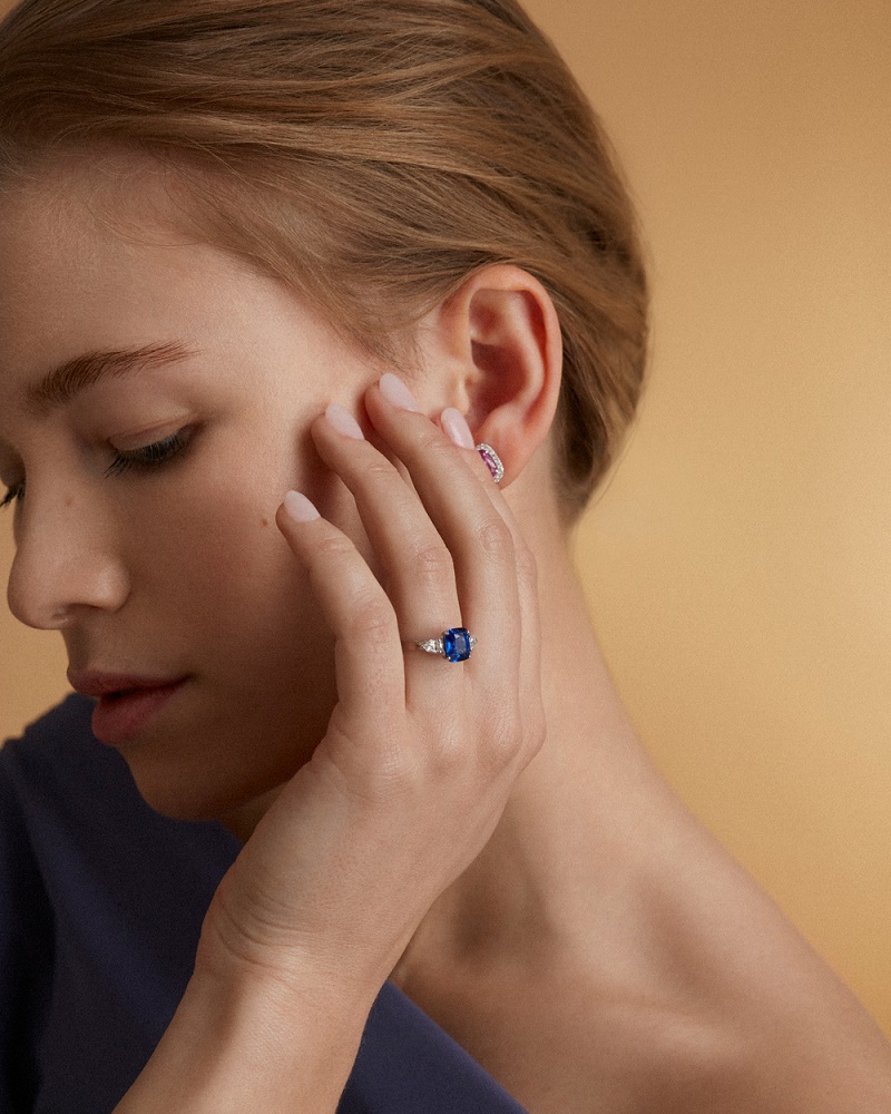 Crafted from premium platinum, this trilogy ring represents the pinnacle of luxury and design, ideal for those who appreciate the rare and extraordinary beauty of natural gemstones. Whether marking a special occasion, celebrating an engagement, or simply indulging in the art of fine jewellery, this ring, with its Sri Lankan sapphire and dazzling diamonds, is a masterpiece destined to captivate and enchant.