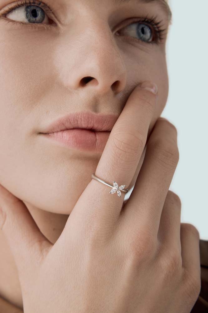Ideal for special occasions or as an elegant daily accessory, this platinum flower ring embodies the perfect balance of modern craftsmanship and classic allure. Whether it's an engagement, anniversary, or a significant personal milestone, this ring is a splendid addition to any fine jewellery collection, promising to be cherished for generations.