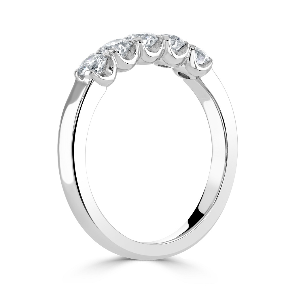 Discover the exquisite beauty of our platinum ring, an epitome of classic elegance and timeless design. This luxurious ring features four claw-set round brilliant cut diamonds, meticulously arranged to showcase their collective sparkle and brilliance, with a total diamond weight of 0.64 carats. Crafted in premium platinum, known for its durability and sleek finish, this ring is designed to highlight the natural beauty of each diamond, creating a stunning visual display that captivates from every angle. Perfect for celebrating life's significant milestones, this five-diamond ring is an ideal choice for anyone seeking a piece that combines sophisticated allure with lasting style.