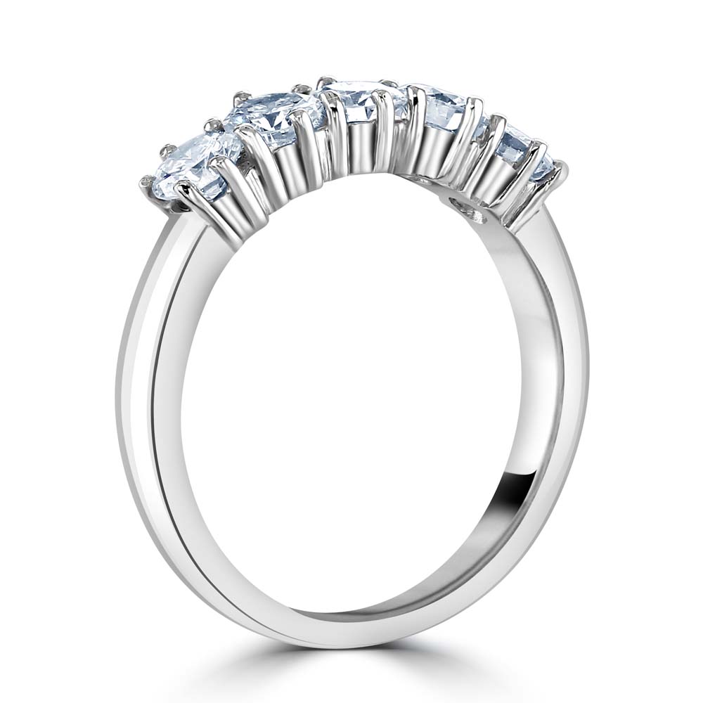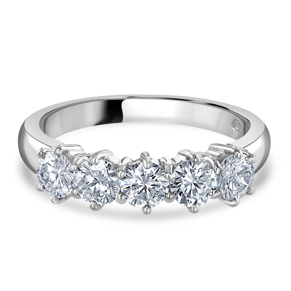 A timeless platinum eternity ring, a symbol of enduring love and sophistication. This exquisite ring is claw-set with five round brilliant cut diamonds, each chosen for its exceptional sparkle and clarity, totalling 1.01 carats in diamond weight. Crafted from premium platinum, this ring offers unmatched durability and a sleek, modern finish that enhances the brilliance of the diamonds. The claw setting elevates each stone, allowing light to enter from multiple angles and creating an impressive display of luminosity. Ideal for an anniversary, a special milestone, or as a meaningful gift, this eternity ring represents a lasting commitment and is sure to be cherished for generations. Embrace the blend of classic design and contemporary elegance with this stunning platinum diamond ring, a perfect choice for those who appreciate the finer things in life.