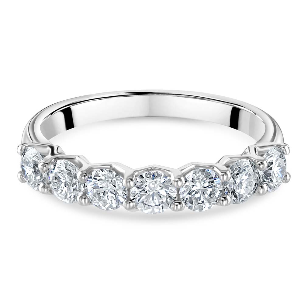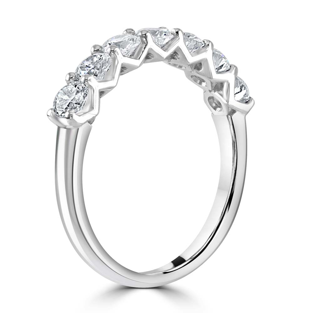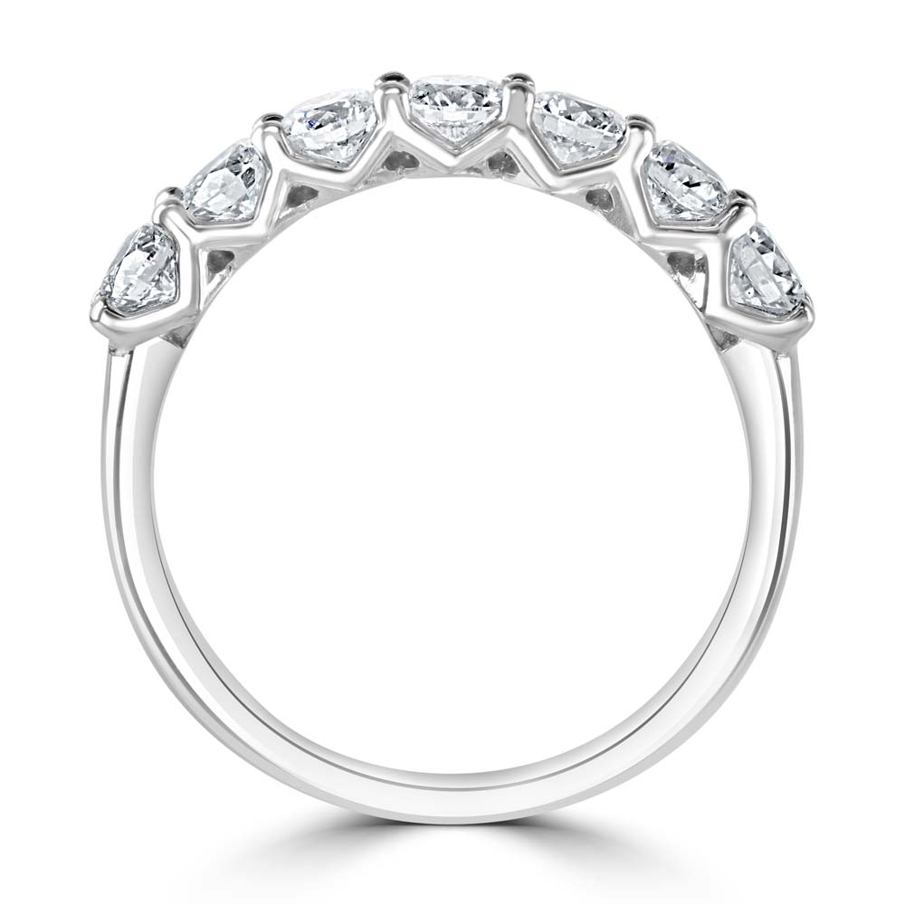 Enhance your collection with the timeless elegance of our platinum eternity ring, featuring five exquisitely brilliant round cut diamonds, each meticulously set in a unique four-claw 'V' collet. This stunning design not only secures the diamonds but also amplifies their natural brilliance and sparkle, with a total diamond weight of 1.01 carats. Crafted from high-quality platinum, known for its strength and enduring beauty, this ring is perfect as a symbol of everlasting love. Whether celebrating an anniversary, completing your wedding set, or simply adding a touch of luxury to your daily wear, this eternity ring offers a blend of sophistication and exceptional craftsmanship that will be cherished for generations.