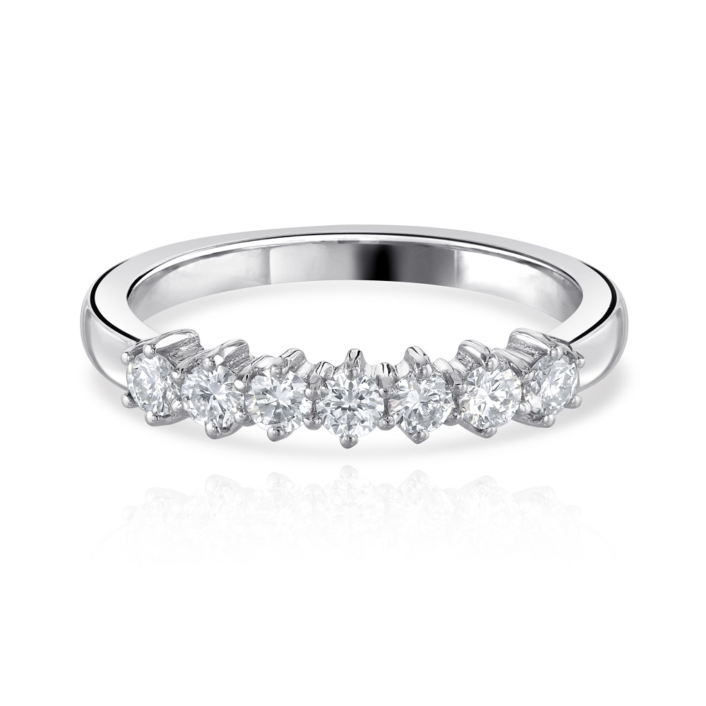 Discover the timeless elegance of our platinum half eternity ring, featuring seven round brilliant cut diamonds securely set in a six-claw setting. With a total diamond weight of 0.35 carats, this ring offers a captivating sparkle that enhances its luxurious design. Ideal for marking special occasions or adding a touch of sophistication to your jewellery collection, this platinum half eternity ring combines classic beauty with exceptional craftsmanship. The durable platinum band perfectly complements the radiant diamonds, creating a piece that symbolizes everlasting love and commitment.