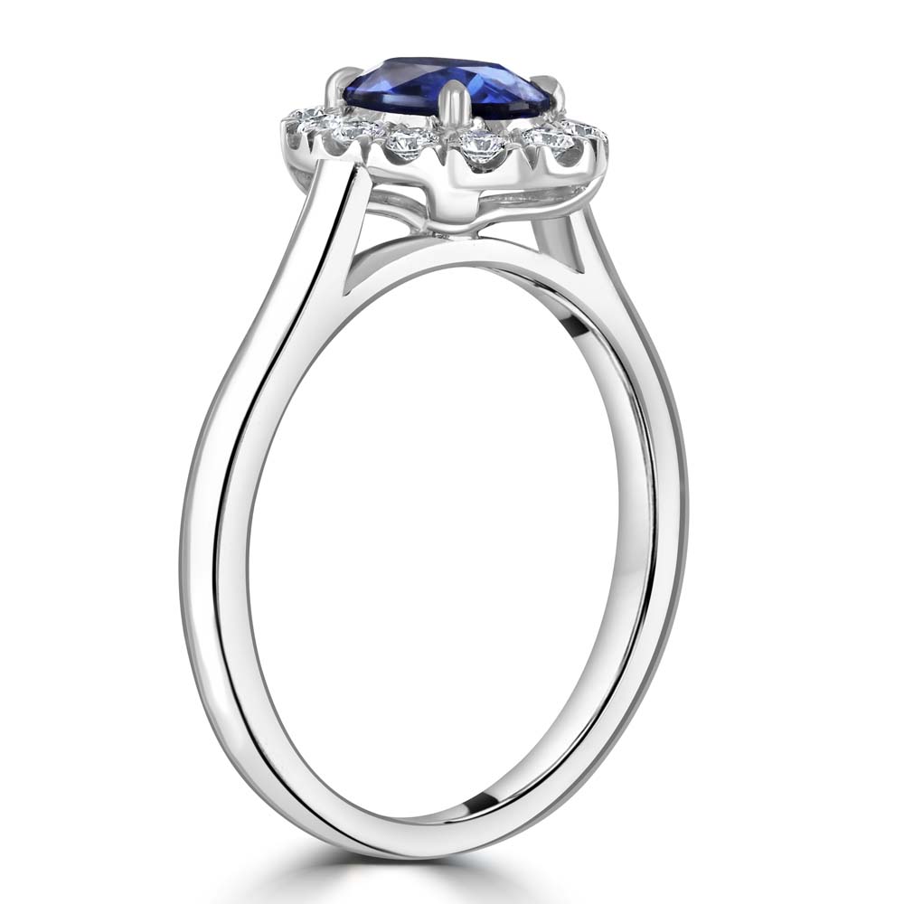 A refined statement of timeless elegance, this platinum cluster ring features a captivating 1.02 carat oval-cut sapphire, held securely in a classic four-claw setting. The sapphire’s rich, velvety hue is beautifully complemented by a radiant halo of twelve micro claw-set round brilliant-cut diamonds, with a total weight of 0.21 carats. Expertly crafted in luxurious platinum, the design balances modern precision with traditional charm, allowing the central gemstone to take centre stage while the surrounding diamonds add a delicate brilliance. A sophisticated piece, perfect for marking life’s most meaningful moments or elevating any fine jewellery collection.