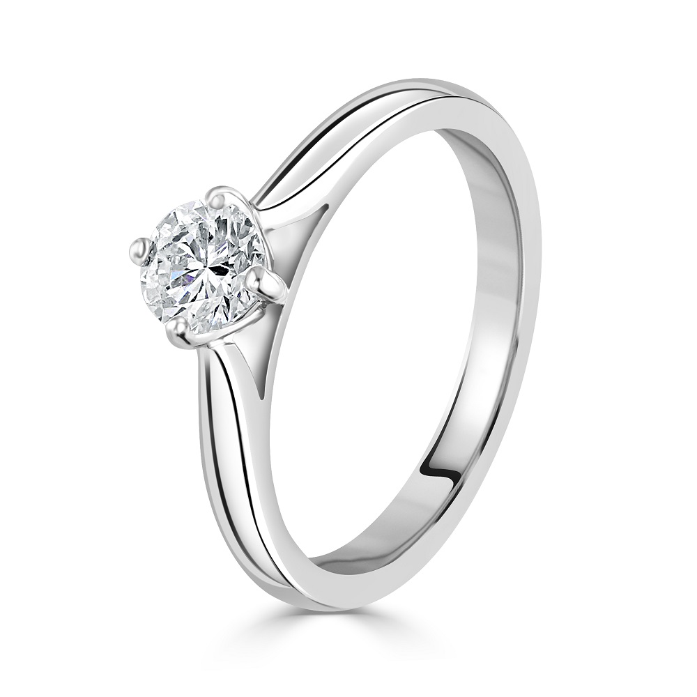 The centrepiece diamond, weighing 0.40 carats, boasts an impressive E colour and SI1 clarity, ensuring a clear, vibrant sparkle that is sure to captivate. Crafted from premium platinum, the ring's band offers a sleek, durable finish that complements the diamond’s radiance perfectly, making it a luxurious choice for those seeking a blend of modern elegance and classic style.
