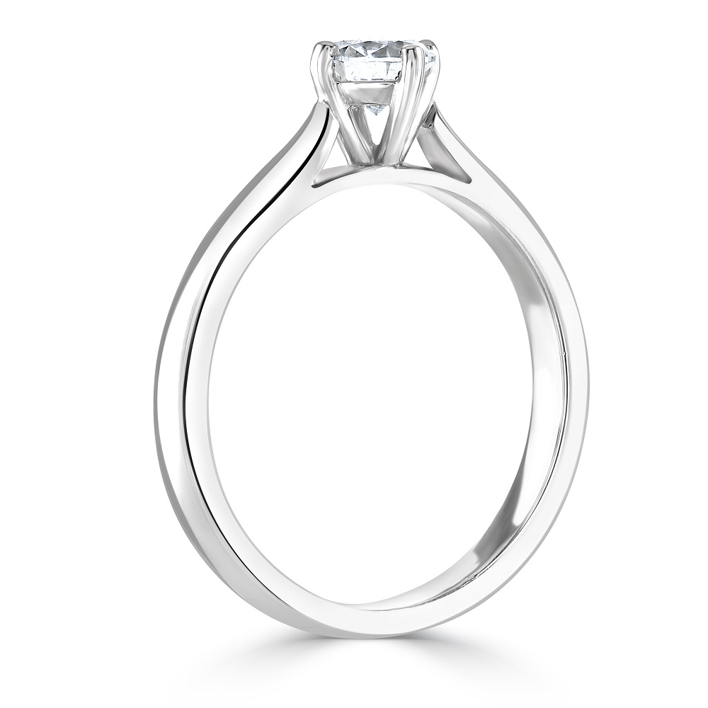 Embrace timeless elegance with our Platinum Single Stone Ring, featuring a GIA-certified 0.50ct round brilliant cut diamond. This exquisite diamond is securely held in a four-claw compass setting, which not only enhances the stone's natural brilliance but also adds a modern touch to the classic design. The diamond is graded F in colour and VS2 in clarity, ensuring a near-flawless appearance with exceptional sparkle. Crafted from durable and sleek platinum, this ring is designed to showcase the diamond’s pure beauty, making it an ideal choice for engagements, special anniversaries, or as a luxurious gift. Elevate your fine jewellery collection with this sophisticated and elegant single stone ring, a symbol of purity and timeless style.