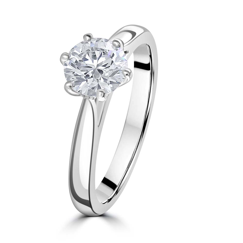 Discover timeless sophistication with this platinum diamond solitaire engagement ring, a perfect choice for those seeking luxury engagement rings with enduring elegance. Featuring a 0.92-carat round brilliant-cut diamond, this exquisite piece is secured in a classic six-claw setting, designed to maximize brilliance and light reflection. Graded F colour and SI1 clarity, the diamond offers near-colourless beauty and exceptional sparkle, making it an ideal symbol of love and commitment. Crafted in premium platinum, this ring combines strength, purity, and modern luxury for a design that lasts a lifetime.