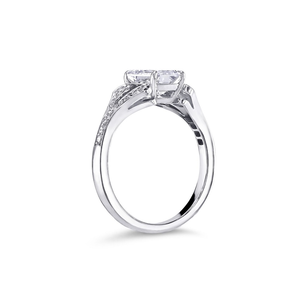 Elevate your elegance with our exquisite Platinum Ring, featuring a mesmerizing emerald cut centre diamond, weighing a significant 1.59ct. This centrepiece is flawlessly complemented by diamond-set split shoulders, adding an additional layer of sophistication and sparkle. Each diamond has been carefully selected for its exceptional quality, with the centre stone boasting an E colour and SI1 clarity, certified by the Gemmological Institute of America (GIA), ensuring both brilliance and transparency. The diamond shoulders contribute an additional total weight of 0.54ct, perfectly balancing the ring's aesthetic with their radiant light. This platinum ring embodies luxury and timeless design, making it an ideal choice for those seeking a statement piece that celebrates love and commitment. Whether you're marking a special occasion or simply indulging in the beauty of fine jewellery, this ring with its distinguished emerald cut diamond and sparkling shoulders offers unmatched elegance and sophistication.Top of Form