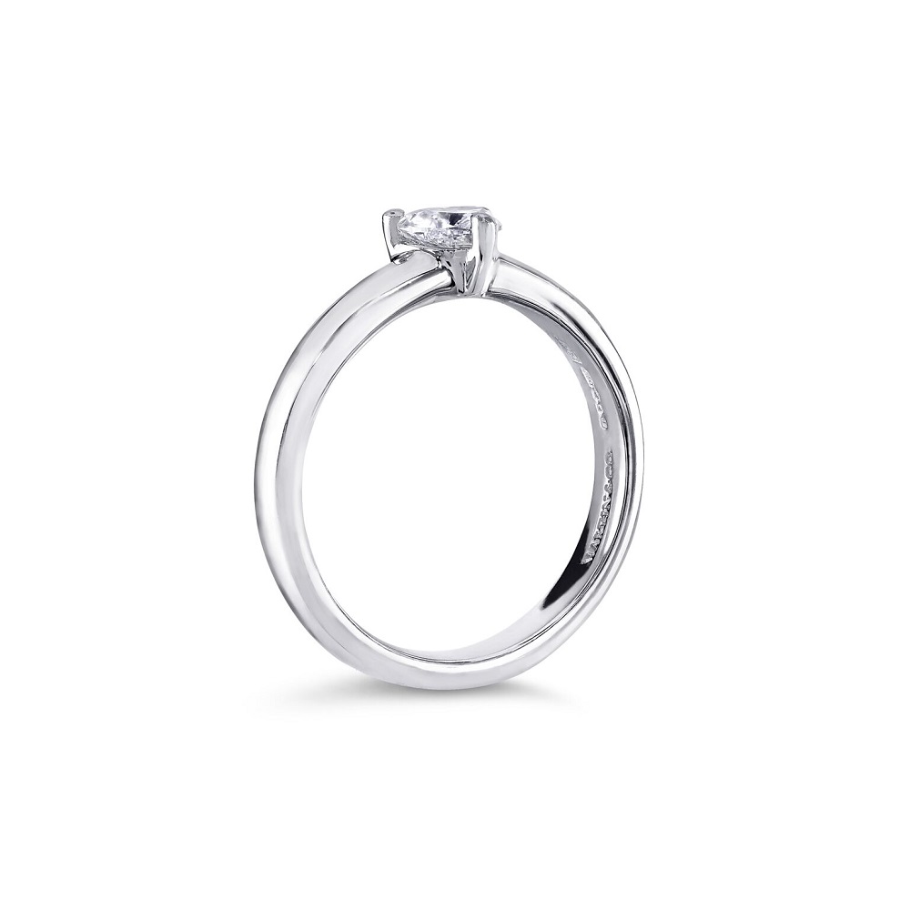 An exquisite platinum diamond solitaire ring, a symbol of timeless elegance and romantic sophistication. At the heart of this stunning piece is a beautifully claw-set, heart-shaped diamond, weighing 0.36cts, that radiates unparalleled sparkle and clarity. This unique diamond cut not only captures the essence of love but also reflects a brilliant light with every movement.