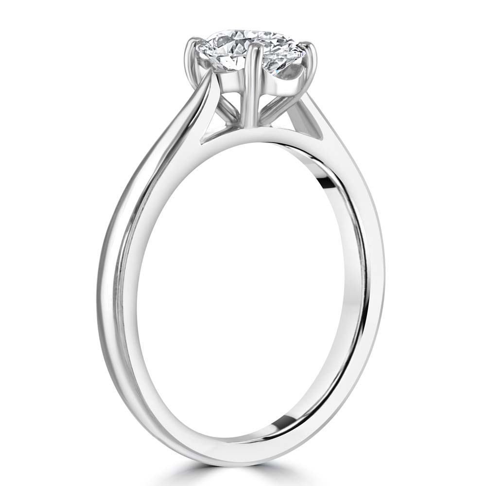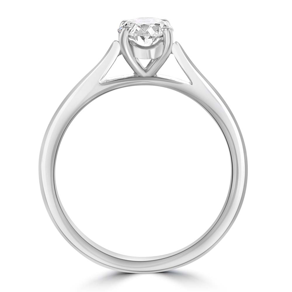 Embrace timeless sophistication with our platinum solitaire ring, featuring a dazzling oval cut diamond set in a classic 4-claw setting. This elegant ring is designed with tapered shoulders, drawing attention to the stunning centre diamond and enhancing its brilliance. The centrepiece of this exquisite ring is a GIA-certified oval cut diamond, weighing an impressive 0.80 carats. With an exceptional E colour grade, the diamond offers a near-colourless radiance that captivates the eye. The VS1 clarity grade ensures a pristine sparkle, with inclusions that are only visible under high magnification, allowing the diamond's true beauty to shine through. Crafted from premium platinum, this solitaire ring combines luxurious aesthetics with lasting durability. The tapered shoulders of the band elegantly accentuate the centre diamond, creating a harmonious and balanced design. Perfect for engagements, anniversaries, or any special occasion, this platinum solitaire ring is a symbol of refined elegance and everlasting love.