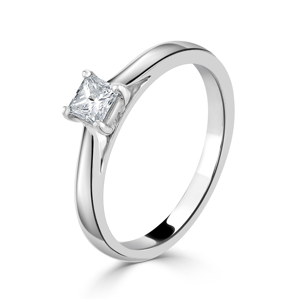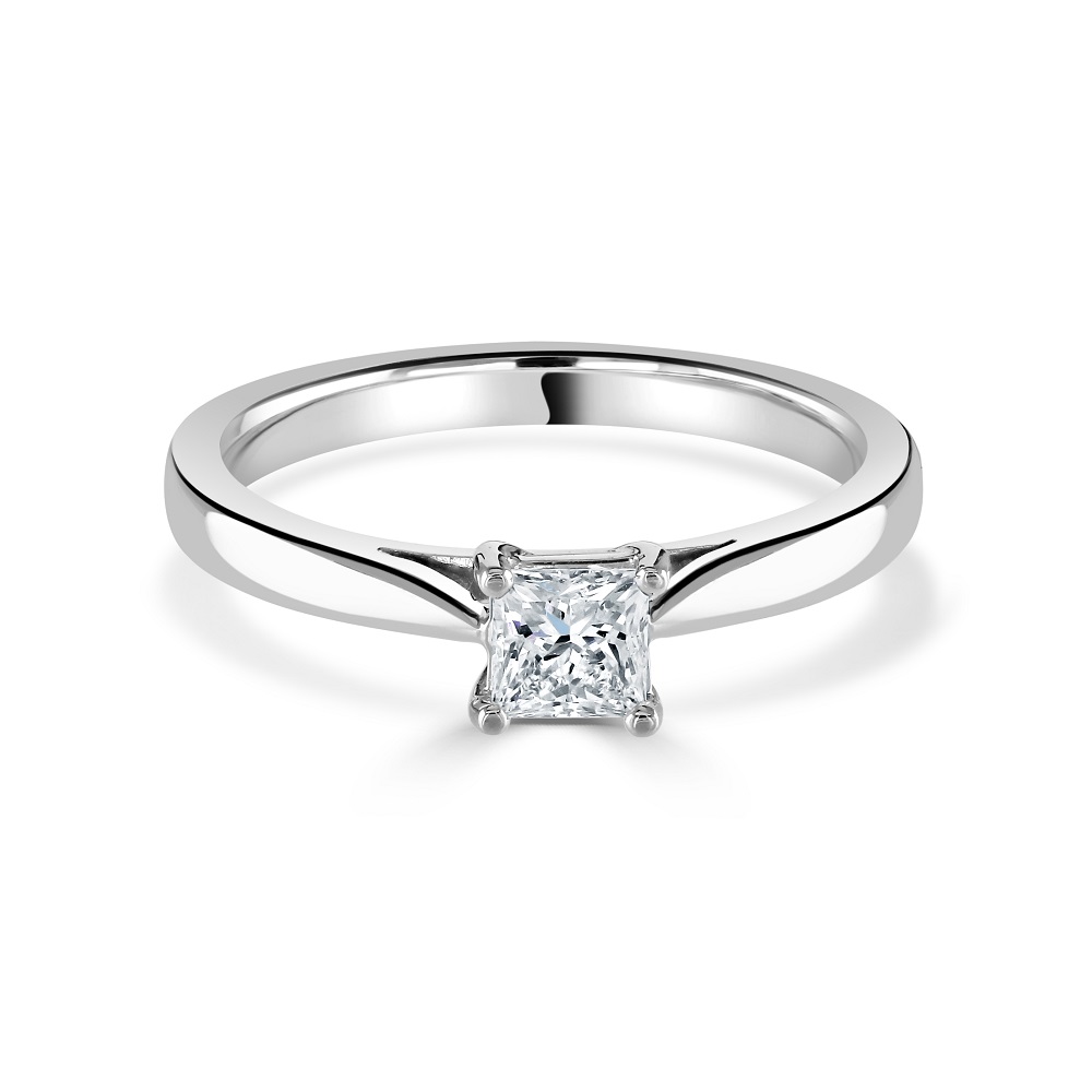 An elegant platinum solitaire ring, featuring a stunning four-claw set princess cut diamond. This exquisite ring boasts a 0.30ct diamond that radiates unparalleled brilliance and clarity. The diamond is GIA certified, ensuring top-tier quality with a colour grade of D and clarity of VS2, making it nearly flawless in its appearance. Crafted from premium platinum, this ring offers durability and a sleek, polished finish that enhances the diamond's natural beauty. The classic solitaire design with a modern princess cut makes this ring an ideal choice for engagements, special occasions, or as a luxurious gift. Embrace the sophistication and sparkle of this solitaire ring, a symbol of pure elegance that will last a lifetime.
