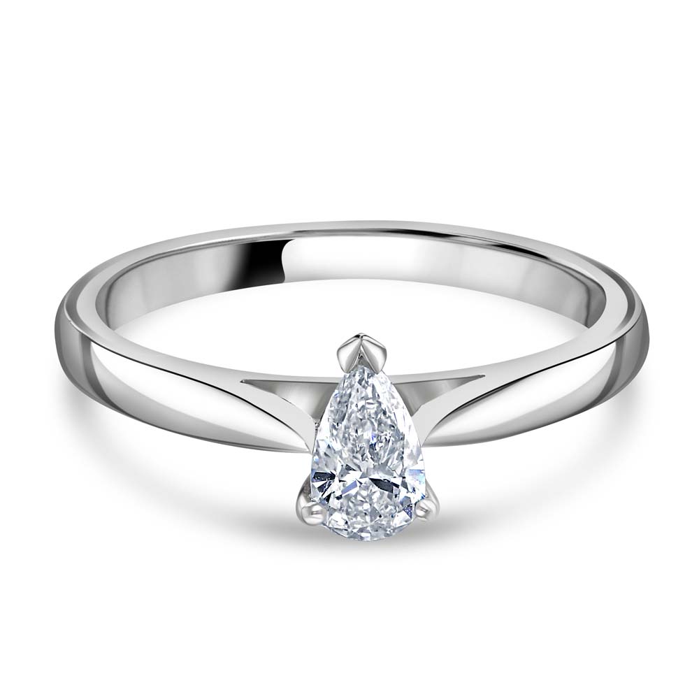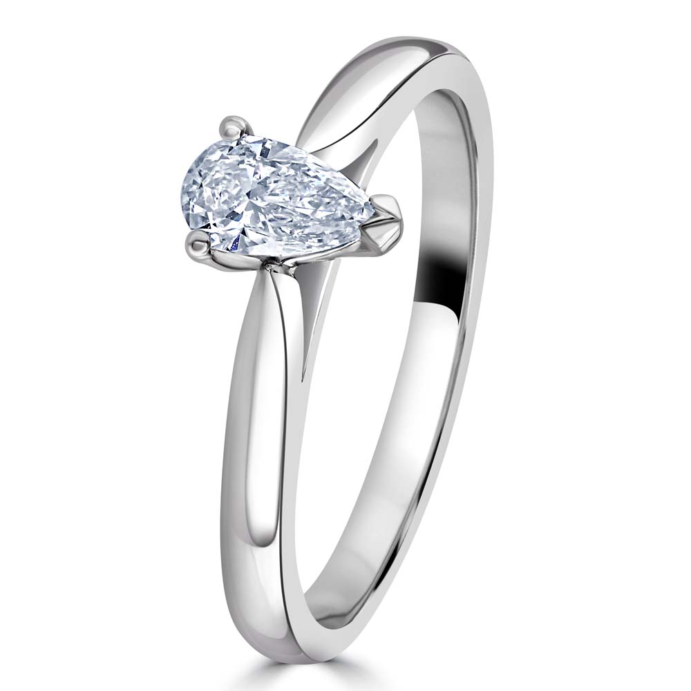 An exquisite platinum solitaire ring, a masterpiece of refined elegance and sophisticated design. This ring features a stunning 0.30 carat pear-shaped brilliant cut diamond, exquisitely set in three claws that ensure both security and optimal light exposure to enhance the stone's natural brilliance. This diamond is not just any gemstone; it's GIA certified with an E colour grade and VS1 clarity, signifying its exceptional quality and purity. The high colour and clarity grades ensure that the diamond sparkles with unmatched luminosity, making this ring a captivating choice for those who appreciate the finer details in luxury jewellery. The ring's design is completed with a sleek, tapered shank that enhances the visual appeal of the diamond, making it appear larger and more vibrant. Crafted from platinum, the most durable of precious metals, this ring is designed to withstand the test of time, ensuring a legacy of style and sophistication. Perfect for engagements, anniversaries, or as a signature piece for special occasions, this solitaire diamond ring embodies luxury and timeless beauty. It's an ideal choice for those seeking to express their commitment with a ring as unique and precious as their love.