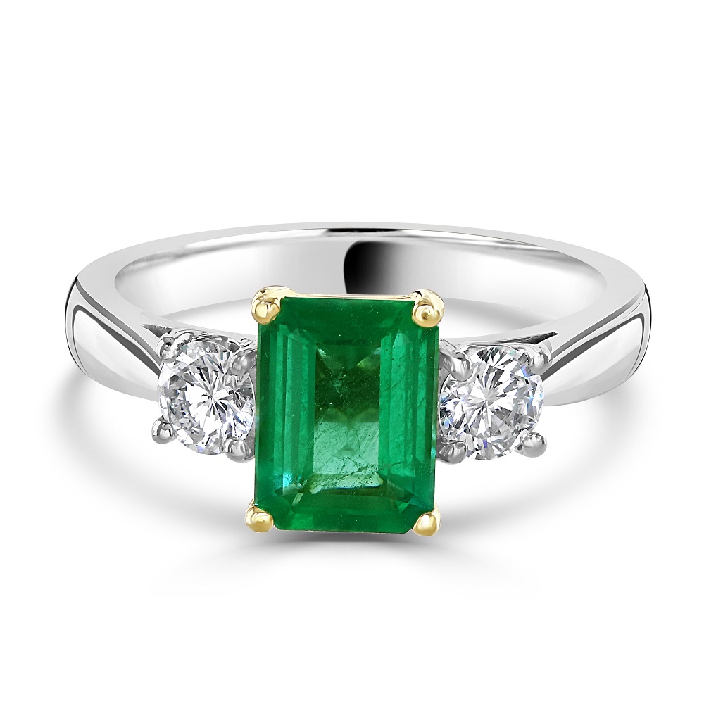 Platinum and 18ct Yellow Gold Emerald and Diamond Trilogy Engagement Ring