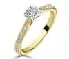 An 18ct yellow gold ring featuring a stunning 0.50ct round brilliant-cut diamond at its heart, meticulously set in four claws to ensure both security and maximum light exposure. The centre diamond boasts an impressive F colour and SI1 clarity, ensuring a dazzling display of sparkle and fire. Complementing the central diamond, each shoulder of the ring is adorned with 12 graduated round brilliant-cut diamonds. These additional diamonds seamlessly transition in size, enhancing the ring's elegance and adding to its overall brilliance. The thoughtful placement of these diamonds creates a captivating effect, drawing the eye towards the centre. This solitaire ring with graduated diamond shoulders is an emblem of sophistication and timeless beauty. It's the perfect choice for those seeking a ring that balances classic elegance with a touch of contemporary flair.