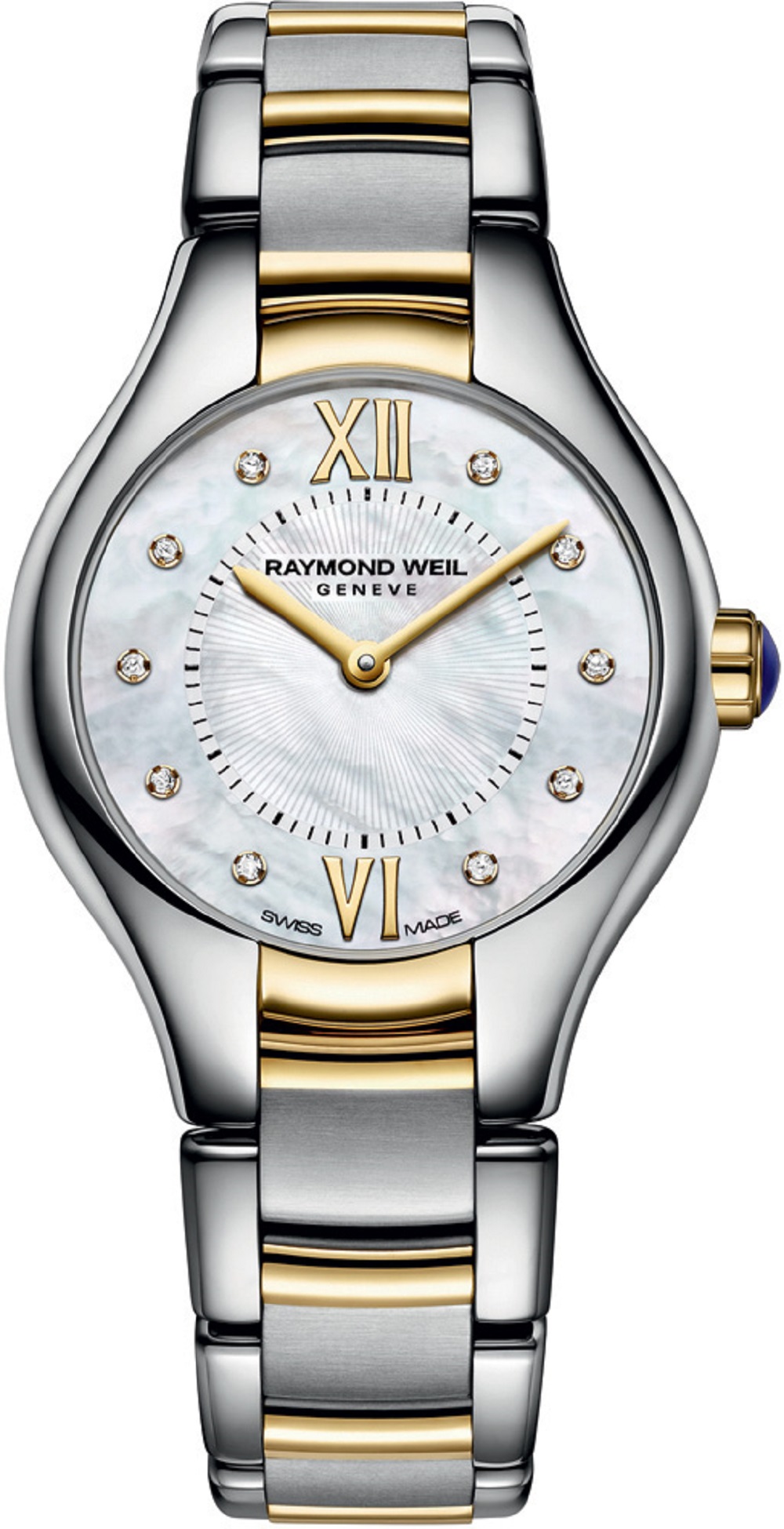 This collection celebrates modernism and femininity. Delicate with a subtle amount of sensuality, a Noemia accompanies today's ladies with charm and elegance. The case is subtly curved and the dial features diamonds and roman numerals. Sparkling with seduction, the Noemia explores all aspects of feminine personality.