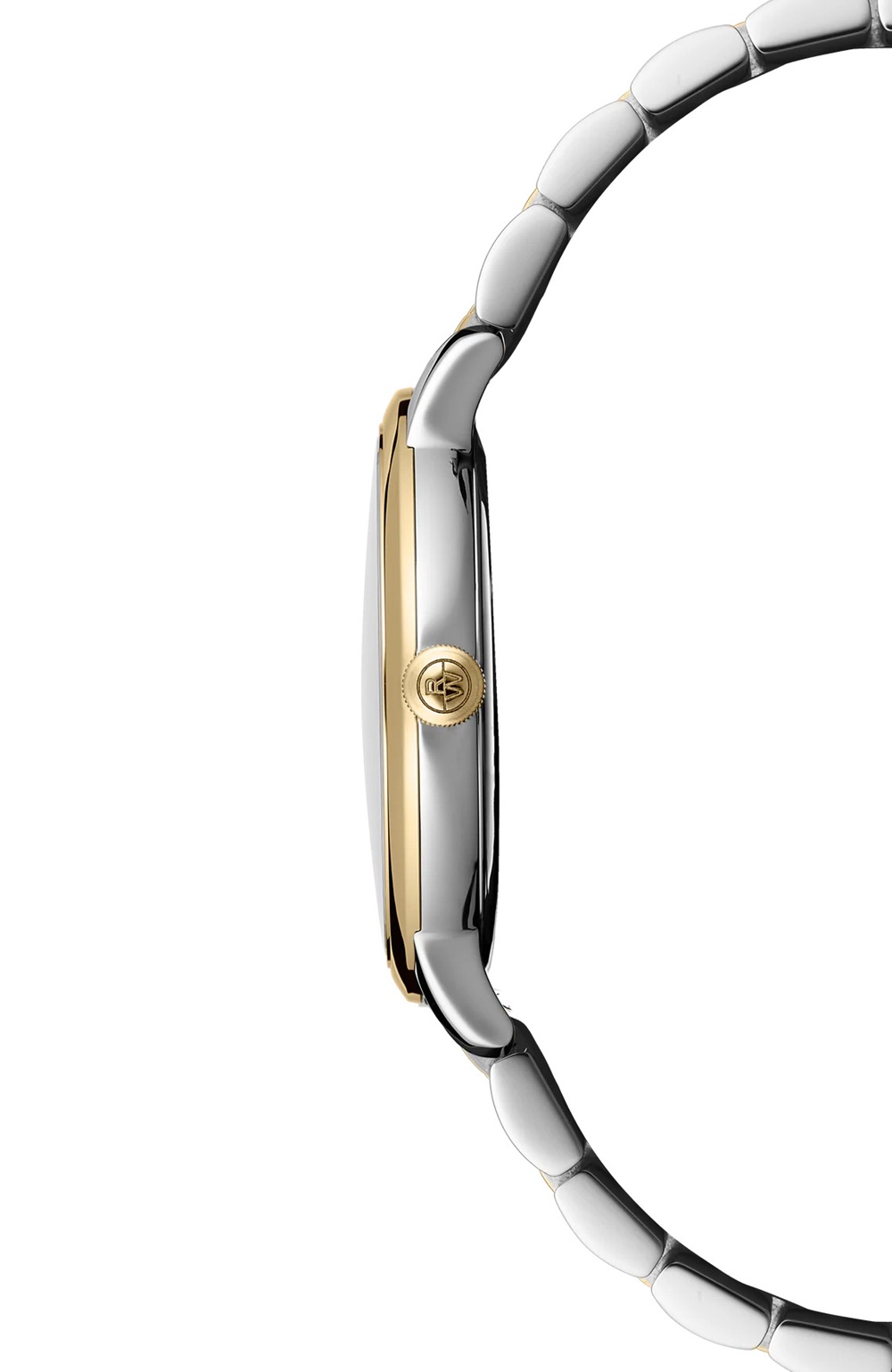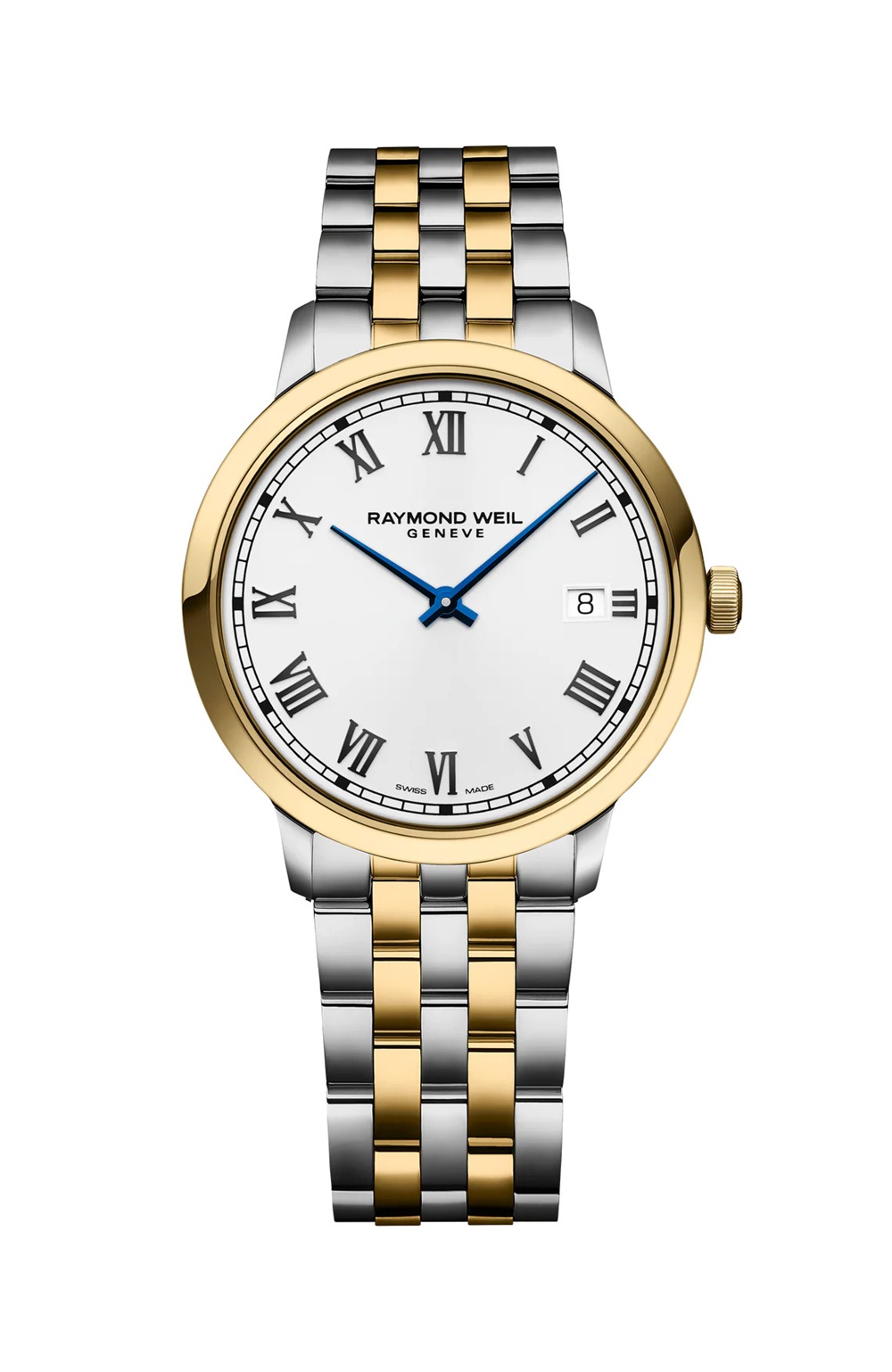 Equipped with a quartz movement and made entirely of stainless steel, this toccata men’s two-tone watch features a 39 mm stainless steel case with yellow gold PVD plating and a date window at 3 o’clock. The white lacquered dial is set with applied Roman numeral indexes and has a railway-track chapter ring that aids readability. To complement this modern classic, a pair of blue hands has been added. Refined design and timeless materials: the toccata collection celebrates the artistic and musical spirit behind the Brand’s DNA. Following in the footsteps of the great composers, toccata promotes the Swiss horology of RAYMOND WEIL while respecting the tradition and heritage handed down from generation to generation within the family company.