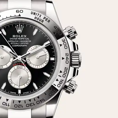 With its tachymetric scale, its three counters and its pushers, the Cosmograph Daytona was designed to be the ultimate timing tool for endurance racing drivers. The bezel features a tachymetric scale to read average speed over a given distance based on elapsed time. This scale offers optimal legibility, making the Cosmograph Daytona the ideal instrument for measuring speeds up to 400 units per hour, expressed in kilometres or miles.
