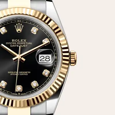 The Rolex fluted bezel is a mark of distinction. Originally, the fluting of the Oyster bezel had a functional purpose: it served to screw the bezel onto the case helping to ensure the waterproofness of the watch. It was therefore identical to the fluting on the case back, which was also screwed onto the case for waterproofness, using specific Rolex tools. Over time, the fluting became an aesthetic element, a genuine Rolex signature feature. Today the fluted bezel is a mark of distinction, in gold on this Datejust 41.