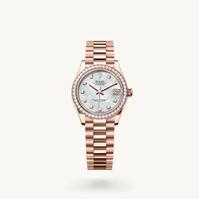 To preserve the beauty of its pink gold watches, Rolex created and patented an exclusive 18 ct pink gold alloy cast in its own foundry: Everose gold. Introduced in 2005, 18 ct Everose is used on all Rolex Oyster models in pink gold.