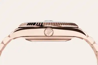 The Rolex fluted bezel is a mark of distinction. Originally, the fluting of the Oyster bezel had a functional purpose: it served to screw the bezel onto the case helping to ensure the waterproofness of the watch. It was therefore identical to the fluting on the case back, which was also screwed onto the case for waterproofness, using specific Rolex tools. Over time, the fluting became an aesthetic element, a genuine Rolex signature feature. Today the fluted bezel is a mark of distinction, in gold on this Day-Date 40.