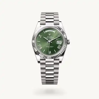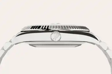 The Rolex fluted bezel is a mark of distinction. Originally, the fluting of the Oyster bezel had a functional purpose: it served to screw the bezel onto the case helping to ensure the waterproofness of the watch. It was therefore identical to the fluting on the case back, which was also screwed onto the case for waterproofness, using specific Rolex tools. Over time, the fluting became an aesthetic element, a genuine Rolex signature feature. Today the fluted bezel is a mark of distinction, in gold on this Day-Date 40.