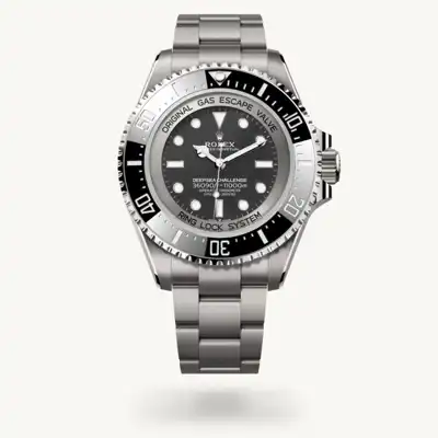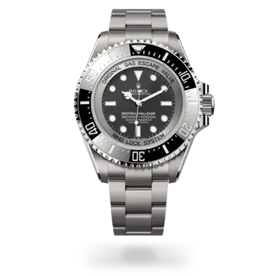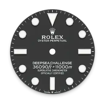 The 60-minute graduated, unidirectional rotatable bezel of the Deepsea Challenge enables divers to precisely and safely monitor their dive and decompression times. It is equipped with a patented black Cerachrom bezel insert manufactured by Rolex in a virtually scratchproof ceramic whose colour is unaffected by ultraviolet rays. The graduation is coated via PVD (Physical Vapour Deposition) with a thin layer of platinum. The dial features large Chromalight hour markers and hands, filled with luminescent material that emits a long-lasting blue glow for excellent legibility in dark conditions.