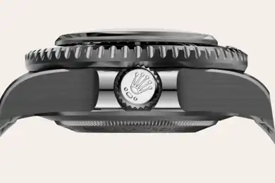 RLX titanium is a grade 5 titanium alloy selected by Rolex for its weightlessness and resistance to deformation and corrosion. Although insensitive to abyssal pressure, the experimental watch that accompanied James Cameron in the Mariana Trench still posed a wearability problem due to its weight, as it was made of 904L steel. The use of RLX titanium to create the case and bracelet of the Deepsea Challenge considerably lightened its weight: it is 30 per cent lighter than the experimental watch that inspired it. The watch also features a particularly visible grain in the satin finish on the bracelet and the case – with the exception of the crown guard. In order to highlight the curved profile of the lugs, the top edges have been chamfered and polished.