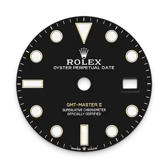 Like all Rolex Professional watches, the GMT-Master II offers exceptional legibility in all circumstances, and especially in the dark, thanks to its Chromalight display. The broad hands and hour markers in simple shapes – triangles, circles, rectangles – are filled with a luminescent material emitting a long-lasting glow.