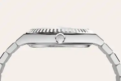 The Rolex fluted bezel is a mark of distinction. Originally, the fluting of the Oyster bezel had a functional purpose: it served to screw the bezel onto the case helping to ensure the waterproofness of the watch. It was therefore identical to the fluting on the case back, which was also screwed onto the case for waterproofness, using specific Rolex tools. Over time, the fluting became an aesthetic element, a genuine Rolex signature feature. Today the fluted bezel is a mark of distinction, in gold on this Land-Dweller 36.