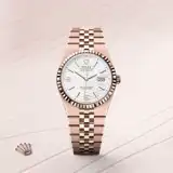To preserve the beauty of its pink gold watches, Rolex created and patented an exclusive 18 ct pink gold alloy cast in its own foundry: Everose gold. Introduced in 2005, 18 ct Everose is used on all Rolex Oyster models in pink gold.