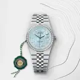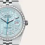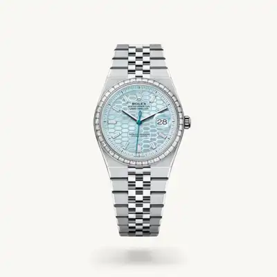 Rare and precious, platinum is striking for its silvery whiteness and vibrant luminosity. It is among the densest and heaviest metals in the world, distinguished by unique chemical and physical properties such as exceptional corrosion resistance. Paradoxically, it is also soft, elastic and highly malleable, which makes machining and polishing especially difficult, demanding an extremely high degree of skill. Rolex always uses 950 platinum, an alloy consisting of 950‰ (thousandths) platinum, painstakingly crafted in-house by the fine metalworkers at Rolex. The noblest of metals for the finest of watches.
