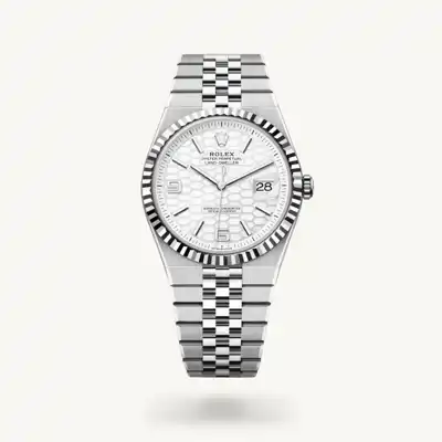 Gold is coveted for its lustre and nobility. Steel reinforces strength and reliability. Together, they harmoniously combine the best of their properties. A true Rolex signature, Rolesor has featured on Rolex models since the early 1930s, and was trademarked as a name in 1933. It is one of the prominent pillars of the Oyster collection.