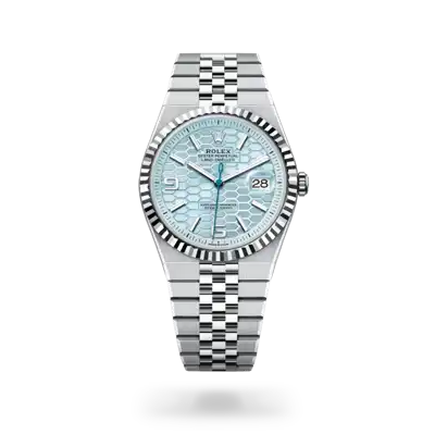 Rare and precious, platinum is striking for its silvery whiteness and vibrant luminosity. It is among the densest and heaviest metals in the world, distinguished by unique chemical and physical properties such as exceptional corrosion resistance. Paradoxically, it is also soft, elastic and highly malleable, which makes machining and polishing especially difficult, demanding an extremely high degree of skill. Rolex always uses 950 platinum, an alloy consisting of 950‰ (thousandths) platinum, painstakingly crafted in-house by the fine metalworkers at Rolex. The noblest of metals for the finest of watches.